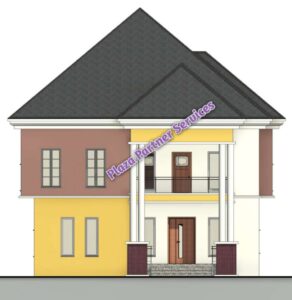 Plaza Partner Services: This is a five bedroom design with first floor void above the ground lounge, first floor family lounge, master bedroom; ground floor dinning, kitchen, storage and ante room, etc. Kindly contact us to design and build your home ~ +2347065925547